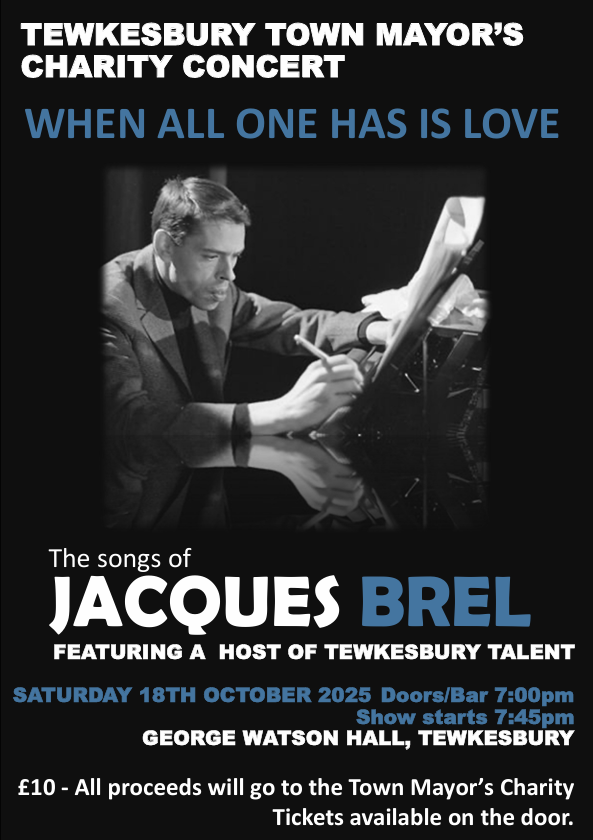 Tewkesbury Town Mayor’s Charity Concert The Songs of Jacques Brel – Featuring a host of Tewkesbury Talent SATURDAY 18TH OCTOBER 2025 Doors/Bar 7:00pm Show starts 7:45pm GEORGE WATSON HALL, TEWKESBURY […]